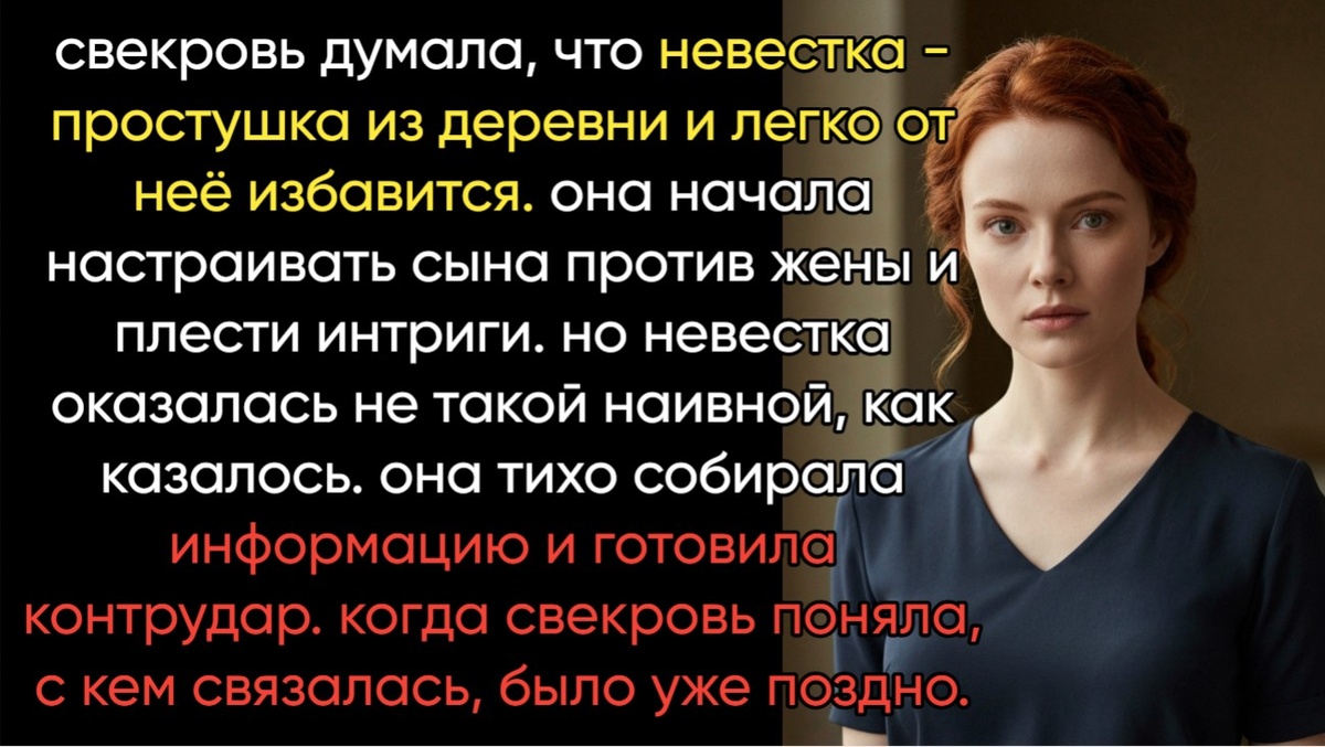 А в соседней комнате Галина Петровна сидела и думала о том, что недооценила невестку. Она считала Марию слабой деревенской девочкой, а та оказалась умной женщиной, способной переиграть опытную интриганку.