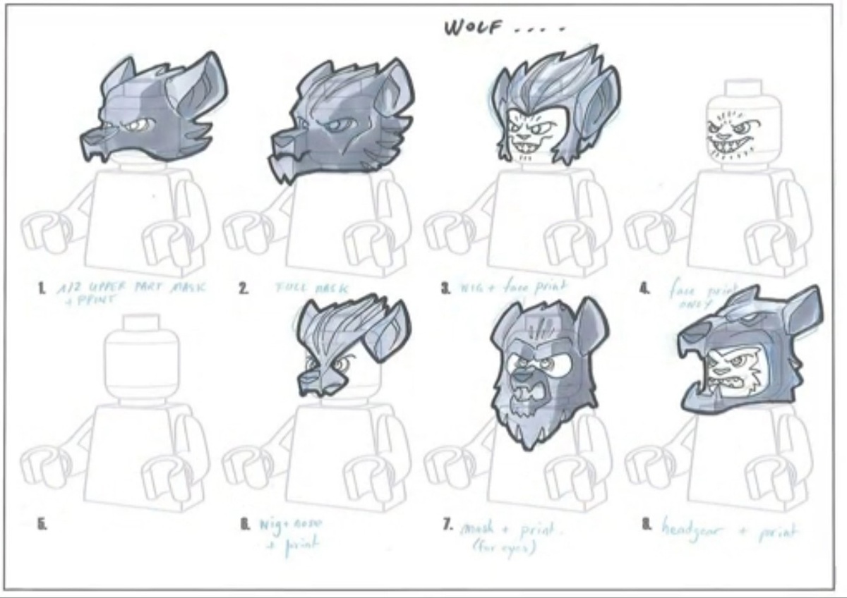 Отличия голов от масок хорошо заметны на сохранившихся и известных публике концептах серии. При этом считается, что головы были созданы для рекламы LEGO Legends of Chima и были частью внутренней презентации, демонстрирующей концепцию Чимы. Но мы с вами люди взрослые и прекрасно понимаем, что никакой необходимости в отдельном существовании голов и масок не было, особенно если вся необходимость привязана к маркетингу. Здесь имели место иные причины, почему головы не стали финальной реализацией - проблемы пресс-форм, которые в 2013 году не так легко было создать для выпуска новых голов. Вопрос состоит в стоимости форм, а новых элементов предполагалось множество. А вот уверенности в успехе начинания еще не было. Потому решили ограничиться масками.