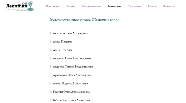 6 декабря 2025 года в Москве пройдет торжественное награждение победителей Национальной Премия имени Юрия Левитана 2025. Будут отмечены достижения в области радиовещания, телевидения и озвучивания. Престижная награда, названная в честь легендарного диктора, чей голос стал символом эпохи, призвана отметить талантливых, преданных своему делу профессионалов. Голос которых обладает силой вдохновлять, объединять и просвещать. Обращение внимания на преимуществах живого голоса перед синтезированным