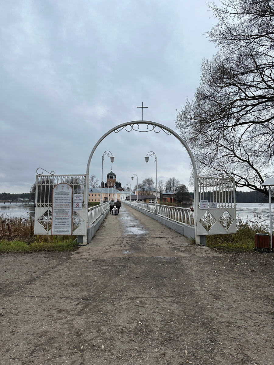 Подобраться к необычному монастырю можно только по мосту или на лодке. Это небольшой островок, который Вы за 5 минут обойдете вдоль и поперек. На чудном острове есть и храмы, и белокаменные домики, и небольшое кафе. Монастырь очень уединенный, спрятан от глаз туристов глубоко в лесах, настоящий "Град на острове" из сказки о царе Салтане!
