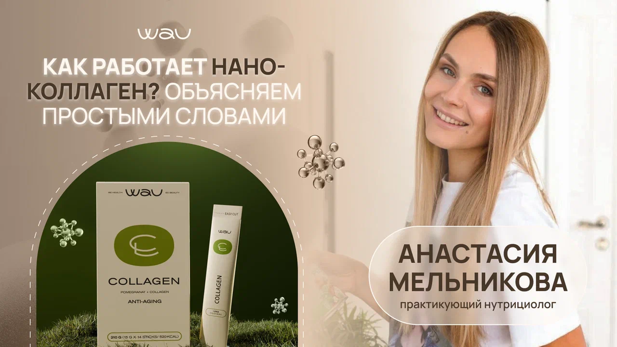 «Нано-коллаген — не маркетинг, а эволюция в нутрициологии. Технология WAU позволяет достичь результатов, недоступных при использовании обычных добавок», — комментирует Анастасия Мельникова, нутрициолог, член Российской ассоциации нутрициологов.