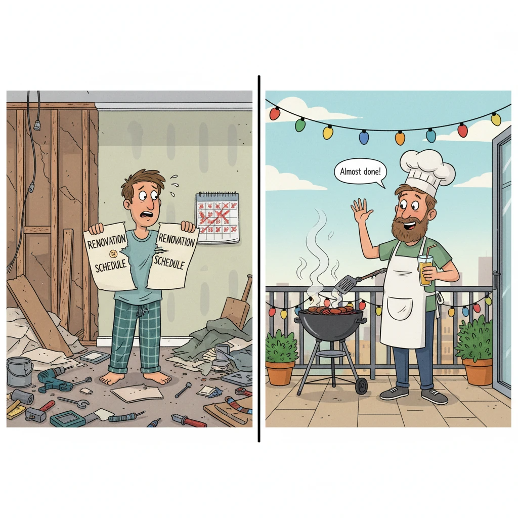 График работ? Он у вас есть? А у соседа — уже готова кухня, а у вас — только соседский перфоратор в стене!