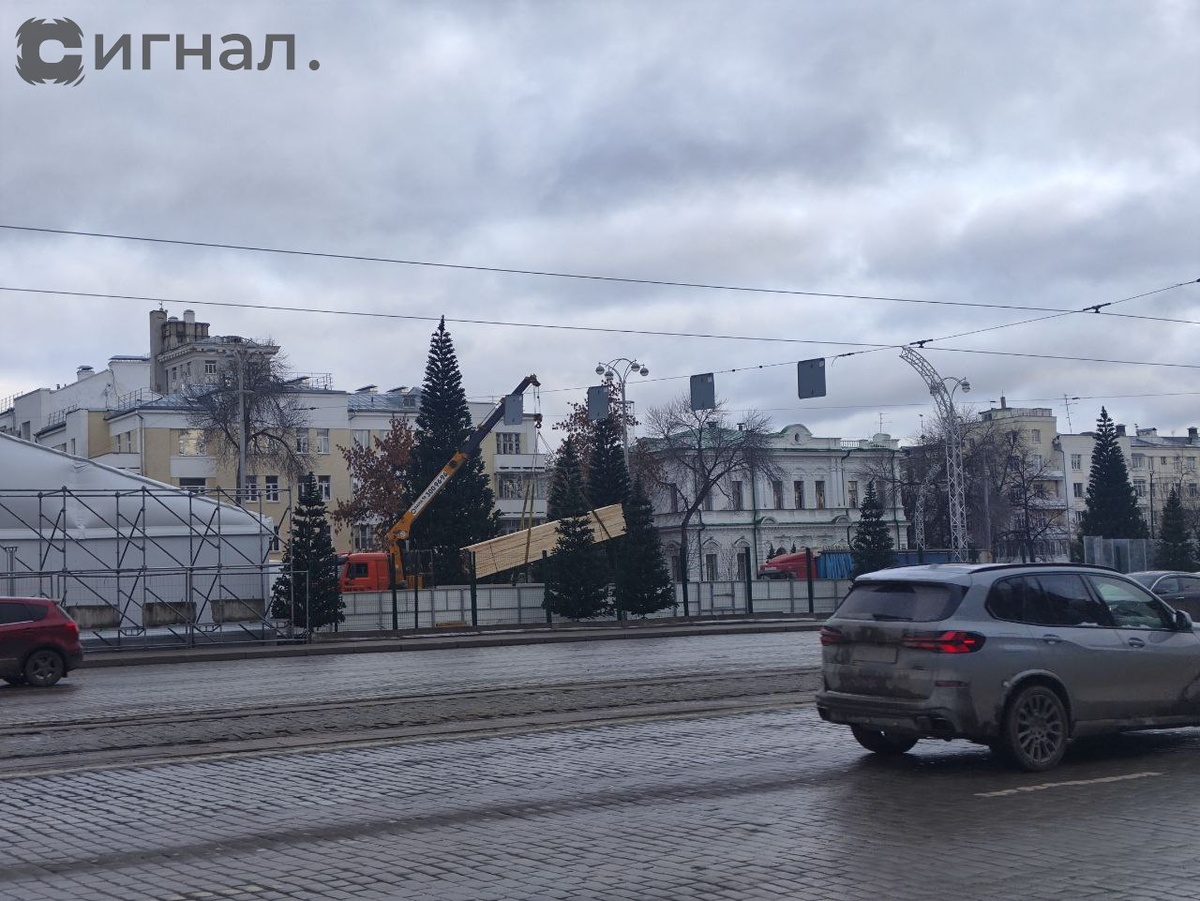 Стройка катка на главной площади Екатеринбурга активно продолжается.