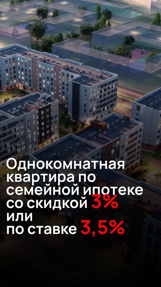 Выгодная семейная ипотека 1. Ставка 3,5% Субсидированная ипотека с низкой процентной ставкой и небольшими ежемесячными платежами для комфортного погашения кредита. 2. Скидка 3% на квадратный метр Ипотека под 6% с дополнительной скидкой на цену жилья, что снижает итоговую сумму кредита и общие переплаты. +79114872987