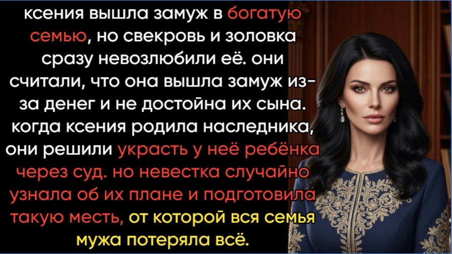 "Я рассказала правду о вашем бизнесе", - спокойно ответила Ксения. "А ещё я подала на развод и требую половину имущества, нажитого в браке".