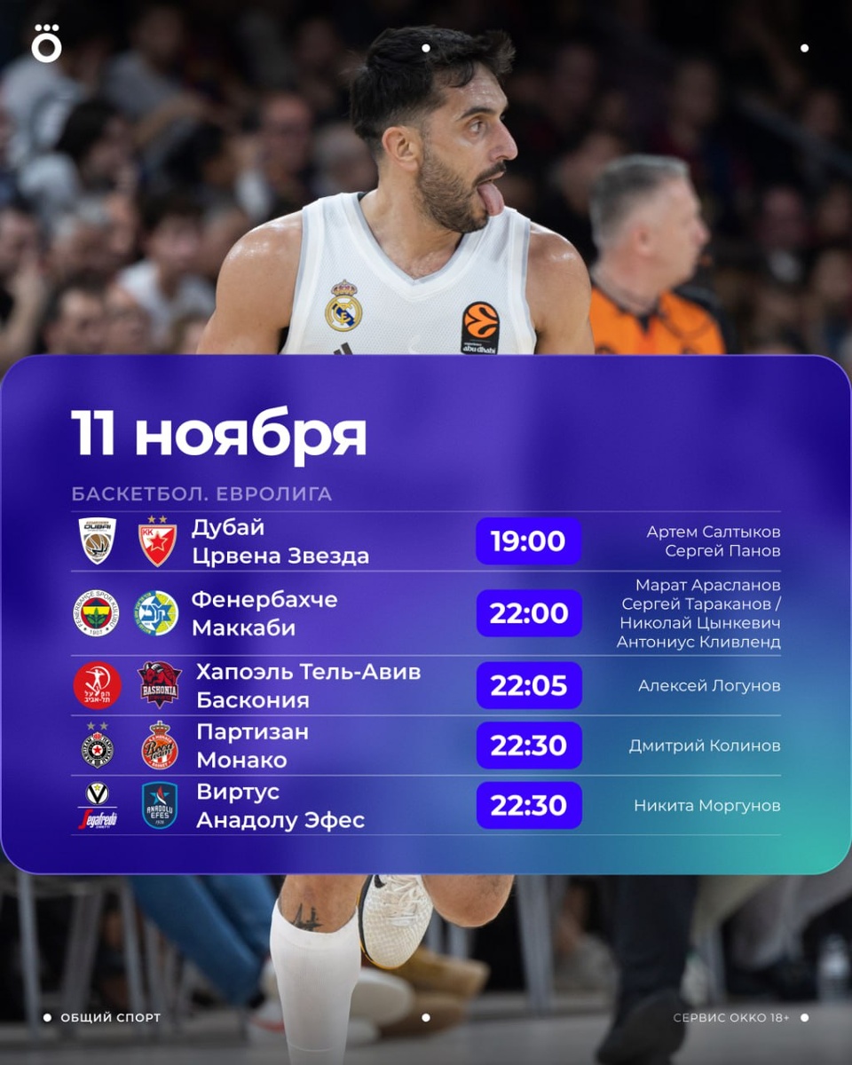 7 матчей Евролиги, 2 Еврокубка и Единая лига ВТБ на десерт — наслаждайся! 🍨 https://okko.tv/s/7ck