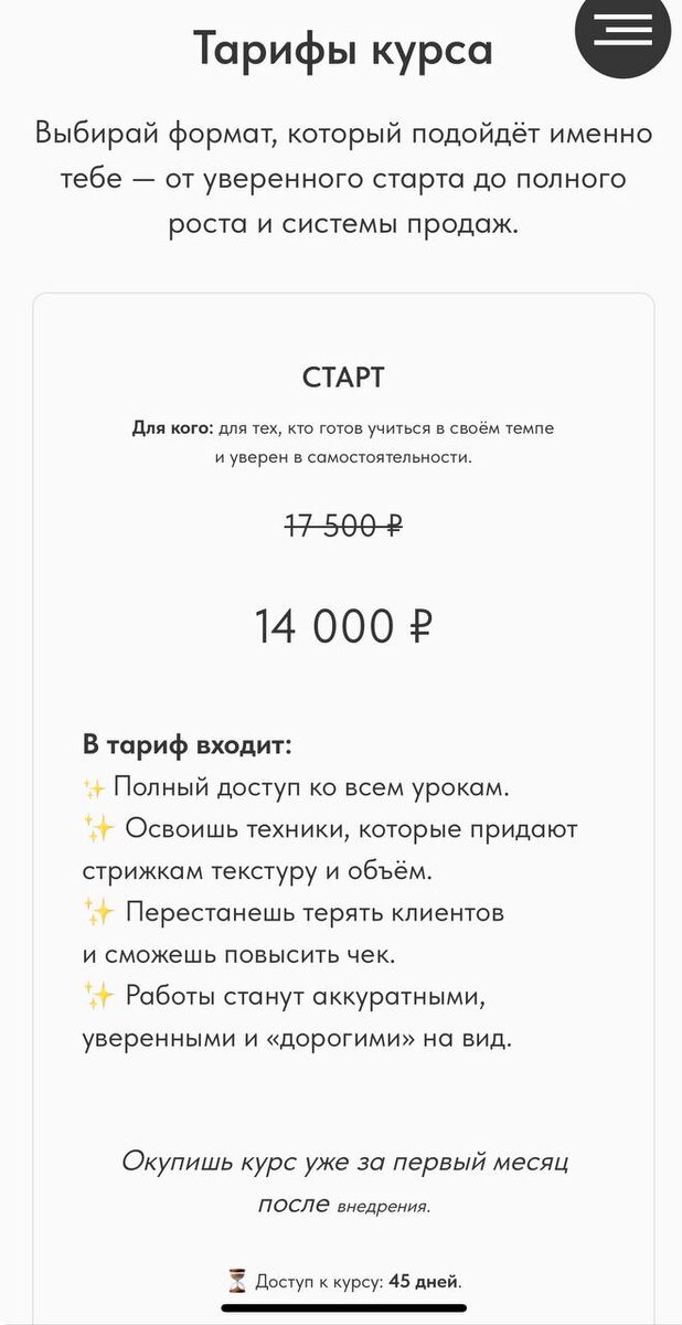 Курс «Искусство стрижки» тариф «Старт