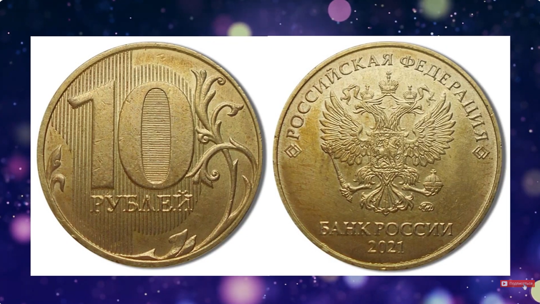 Всем привет! Сегодня вы узнаете о том, как легко различать две разновидности монеты 10 рублей 2021 года. Если вы впервые на нашем канале, то хочу сообщить вам, что мы в своих статьях и видеосюжетах лишней информацией не загружаем. Вы спокойно можете подписаться на наш канал и поставить лайк. На нашем канале более 500 видеосюжетов, которые вы можете посмотреть, перейдя в плейлисты канала на главной странице. В каждом из плейлистов монеты конкретного номинала, но разные по годам. Так что заходите и смотрите. Всё для вас! Друзья, на сегодняшний день нумизматами выявлено пока две разновидности этой монеты. Интересным фактом стало выявление принципиально новой разновидности по реверсу. Для начинающих нумизматов поясню, что реверс — это та сторона монеты, на которой изображён ее номинал. В нашем случае это цифра «10». Реверсом ещё называют обратную сторону монеты. А вот та сторона монеты, на которой изображён двуглавый орёл, называется аверсом. Её также называют лицевой стороной монеты.