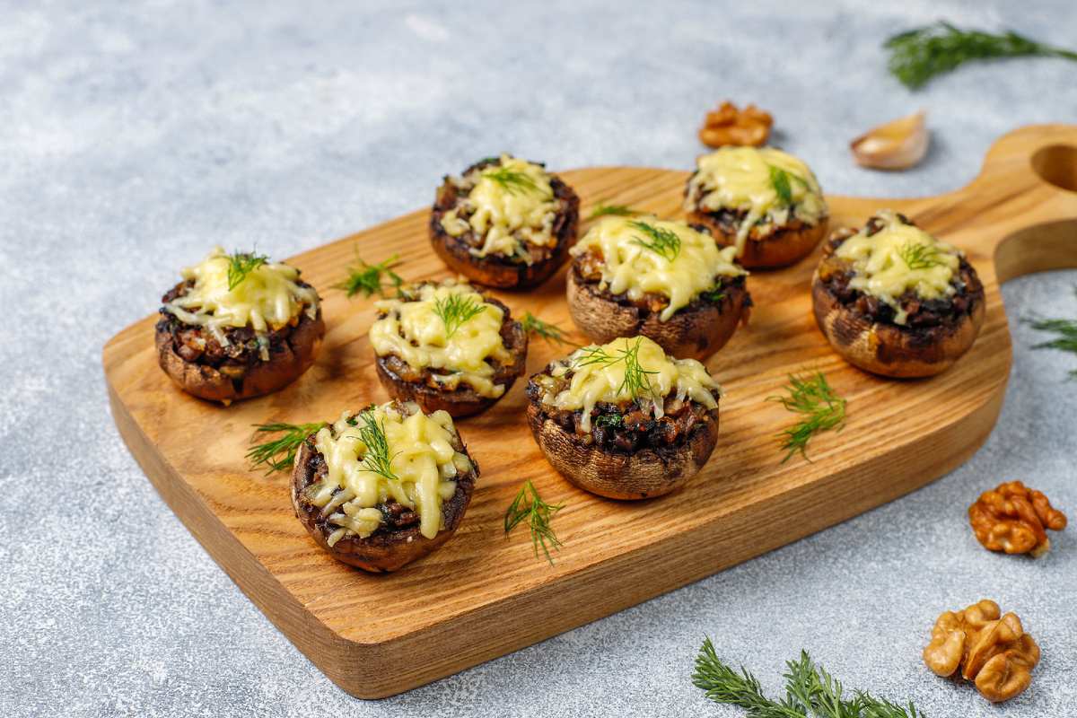Приветствую всех любителей кулинарии! Сегодня я поделюсь с вами одним из моих любимых рецептов — фаршированными шампиньонами. Эта закуска станет украшением любого стола, будь то торжественное мероприятие или уютный семейный ужин. Готовится она быстро и легко, а результат всегда превосходит ожидания. Прежде всего, фаршированные шампиньоны — это идеальный баланс вкуса и пользы. Грибы содержат витамины группы B, железо и калий, а также служат источником белка. Плюс, они обладают низким гликемическим индексом, что делает их прекрасной альтернативой тяжелым закускам. Кроме того, разнообразие начинок позволяет менять вкус блюда под настроения и предпочтения. Это делает шампиньоны незаменимой частью праздничного меню, обеспечивая гостям разнообразие ощущений. Список ингредиентов для этого рецепта минималистичен, но именно в этом и заключается прелесть блюда: Шампиньоны среднего размера — 12-15 шт.