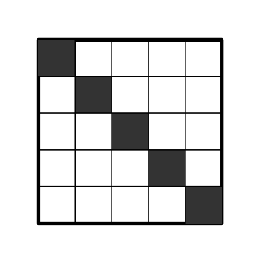 Каждая диагональ либо полностью черная, либо полностью белая. Обе стратегии будут симметричными, но разными для разных цветов. Для клеток белого цвета будем ходить симметрично относительно центрального столбца (осевая симметрия). Для черных клеток будем ходить симметрично относительно центральной клетки (центральная симметрия).