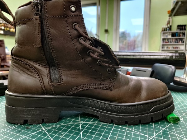 Мы усилим решетки каблучной части плотной микропорой, выберем глубину тонкой листовой микропорой, уменьшим высоту борта извнутри и лишь потом установим подошвы. Пустоты усилены Подняли на два мм Ну вот, всё готово к установке подошв и завершения работ.