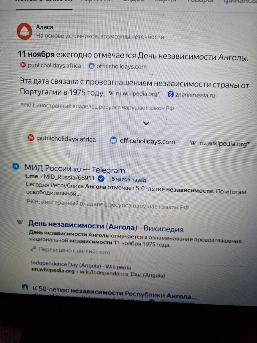 Ехали вчера со старшим сыном, разговоры разговаривали про его учёбу, особо в географию углубились. В очередной раз поняла, что много еще есть чего мне поизучать, чем сегодня и занялась. Благо у меня выходной, а детки на учёбе. Можно в тишине посидеть, почитать. И вот Ангола. Почему именно про эту страну решила почитать? Всё просто. Взялась изучать по алфавиту страны, с коими плохо знакома. И как оказывается вовремя я решила это сделать. Именно сегодня у Анголы, можно сказать, день рождения, юбилей. 50 лет назад была провозглашена независимость страны от Португалии, чьей колонией она являлась несколько веков. Почитала про туризм в Анголе. Недёшево, нужна виза, не всегда безопасно, сегмент HoReCo развит слабо, но при этом 1650 км побережья Атлантического океана, многочисленные леса и саванны. Так к чему я это всё? А просто так. Сижу, изучаю, мне интересно, вот решила с вами поделиться. Ну и ежели вы вдруг как раз думали чем бы таким праздничным наполнить свой день, то вот вам повод. Край