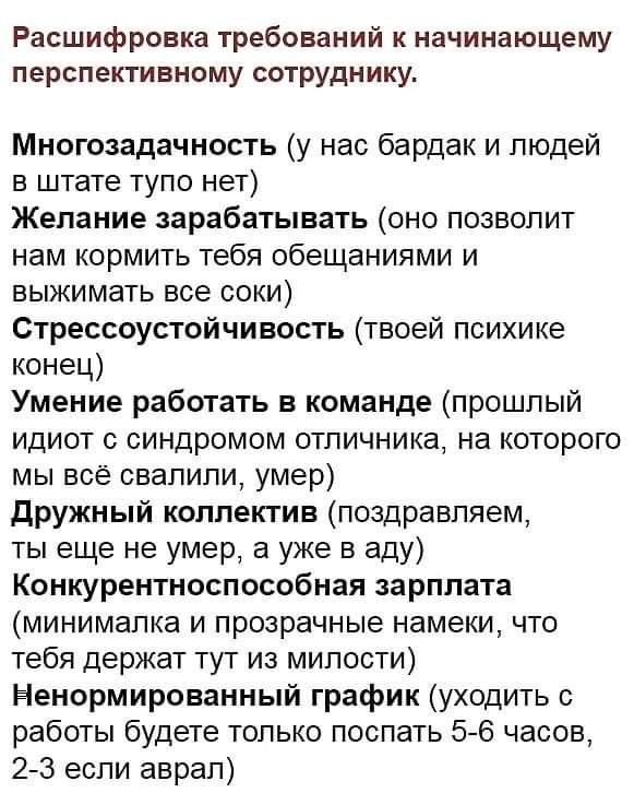 Мне тут начальник сказал интересную фразу: "Не бывает компании без ценностей. Даже если они не сформулированы, они все равно работают на уровне "так сложилось" или "так принято". Сразу вспомнились все эти эвфемизмы про отдел кадров: Возможно, поэтому сформулированных корпоративных ценностей и нет - ну не признаваться же, в самом деле, что "адаптивность" - это у начальника семь пятниц на неделе, а остальные должны догадаться, чего с утра его левая пятка захотела. Осмелюсь предположить, что таких компаний не меньше половины, просто по понятным причинам точную статистику собрать невозможно. А я вот думаю: может, действительно нужно признать, что ценность есть в любом случае, просто есть такие ценности, о которых в приличных домах не говорят?