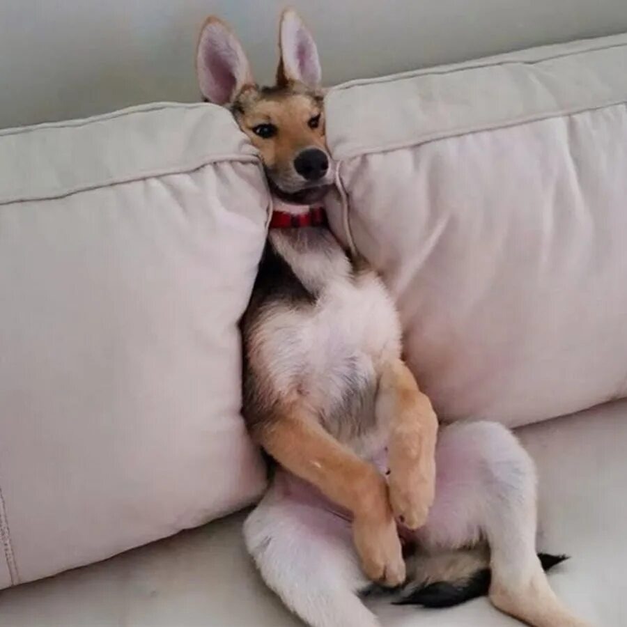 Увидав меня пёс не меняя позиции замахал одним лишь кончиком своего двухцветного хвоста и учтиво сложил набок одно ухо.