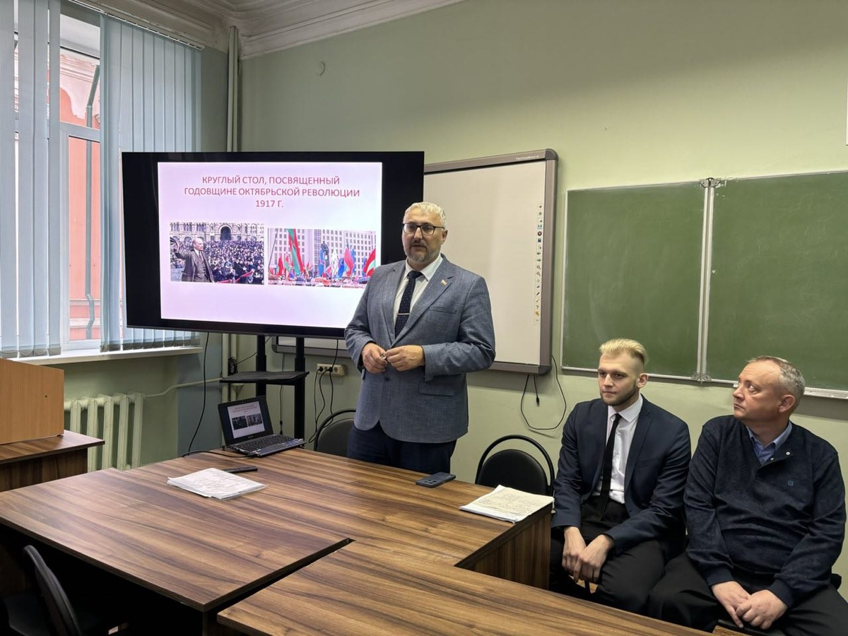 О значении Октябрьской революции для современности 📍В связи с очередной годовщиной Октябрьской революции 1917 г. на факультете истории и межкультурных коммуникаций был проведен круглый стол, посвященный этому событию. 🖇 Организатором мероприятия выступила кафедра философии и специальных исторических дисциплин, участие в нем приняли преподаватели и студенты факультета. 🗣 В приветственном слове декан факультета Станислав Черепко подчеркнул, что октябрь 1917 года привел к важным положительным изменениям в историческом развитии белорусского народа, а также народов бывшего СССР. 🗣 С докладами перед собравшимися выступили доценты кафедры философии и специальных исторических дисциплин Елена Корень и Олег Марченко. 📌 Старший преподаватель кафедры философии и специальных исторических дисциплин Михаил Шпет в формате «вопрос-ответ» обсудил со студентами значение Октябрьской революции, а также историческую память о ней в названиях улиц г. Гомеля.