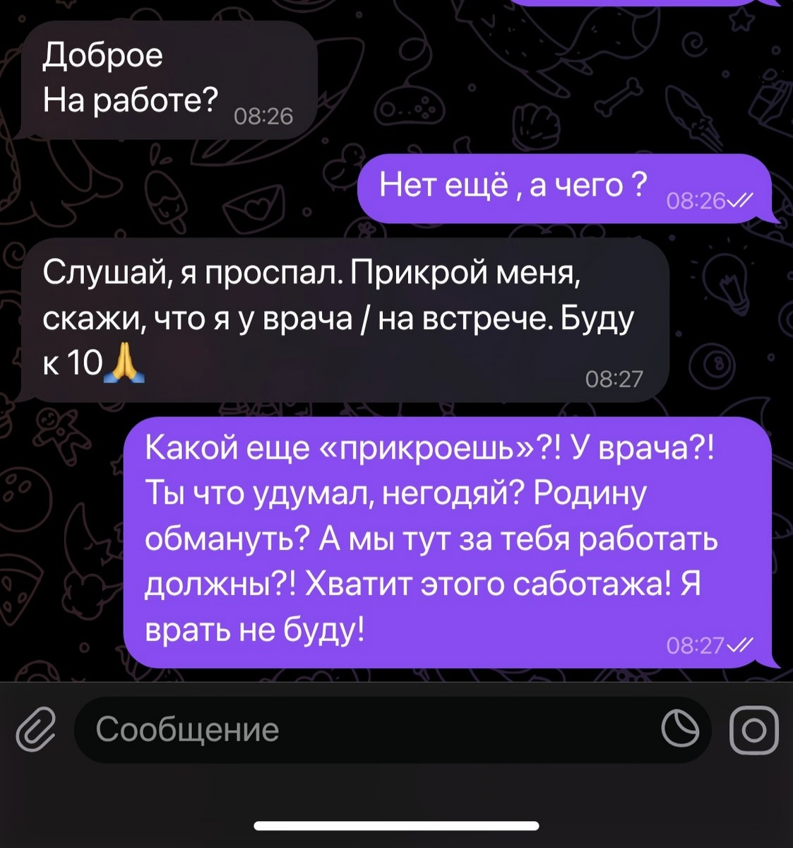 Коллега снова написал «Прикроешь меня на работе»? Я ответил ему голосом Жириновского
