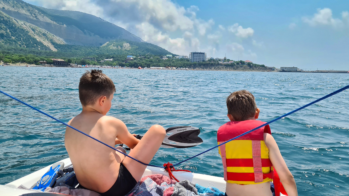 Когда нам показывают лодку, первое желание — рассмеяться им в лицо. Уж очень она похожа на наш вчерашний «Ведущий», хоть и называется «Жара». И это нам продавали как супербыстрый катер! Я уже готов начать ругаться, но тут бросаю глаза на мотор. «Yamaha» 300! 300 лошадиных сил для такой посудины — это что-то из ненаучной фантастики. Мы все рассаживаемся: дети на носу, я подальше, мама на корме. Как только мы выходим из гавани, капитан включает полный газ. На не очень сильном волнении нос лодки начинает бить с такой силой, что дети впадают в полную прострацию и только тихо постанывают. Может быть, это и есть знаменитая кабардинская карбоксигенотерапия? Я по донышку переношу их на корму, где внутренности сотрясаются не так сильно. Надо же, напросился побыстрее ехать.