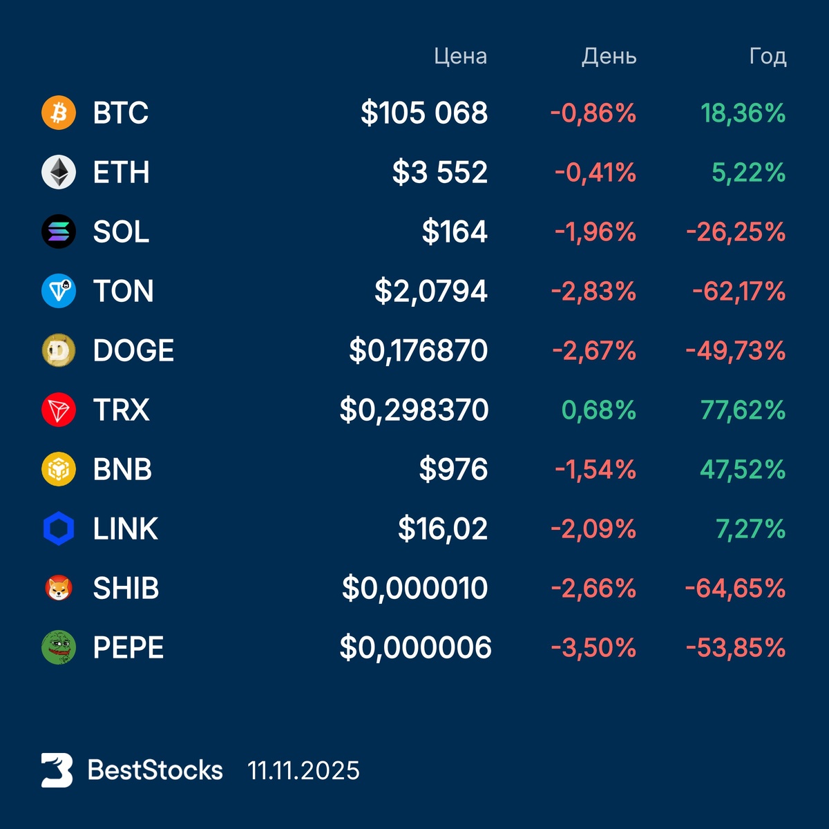Курсы основных криптовалют: Bitcoin, Etherium, Solana, Toncoin, Dogecoin, TRON, BNB, Chainlink, Pepe, Shiba Inu на текущий момент #крипта #crypto #курс #BTC #ETH #SOL #TON #DOGE #TRX #BNB #LINKUSD #PEPEUSD #SHIBUSD ••••• 🎯 Вы знали, что в разделе с криптовалютами можно узнать цены, динамику и ключевые показатели по каждой из доступных криптовалют абсолютно бесплатно?