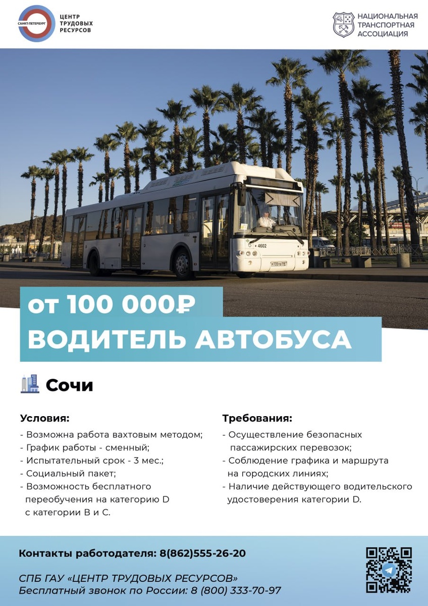 Карьера в лидере пассажирских перевозок России 🚌 ООО «Смарт Бизнес Сервис», управляющее брендом Национальной Транспортной Ассоциации, приглашает на работу профессионалов и целеустремленных специалистов! Наша компания — это: ✅ Системообразующее предприятие федерального уровня ✅ Крупнейший автобусный пассажирский перевозчик в России ✅ Стабильность, надежность и уверенность в завтрашнем дне Мы предлагаем достойные условия труда, официальное трудоустройство и возможность построить карьеру в ведущей транспортной компании страны. 📞 Все подробности о вакансиях вы можете узнать в Кадровом центре "Работа России" г. Новороссийск: 📍 Адрес: ул. Малоземельская, д. 15 📞 Телефон: 8-617-637-618 📧 E-mail: novorossiysk@czn.krasnodar.ru Станьте частью нашей команды и строим будущее российского транспорта вместе! #НТА #НациональнаяТранспортнаяАссоциация #СмартБизнесСервис #ВакансииНовороссийск #РаботаВТранспорте #КарьераВРоссии #РаботаРоссии
