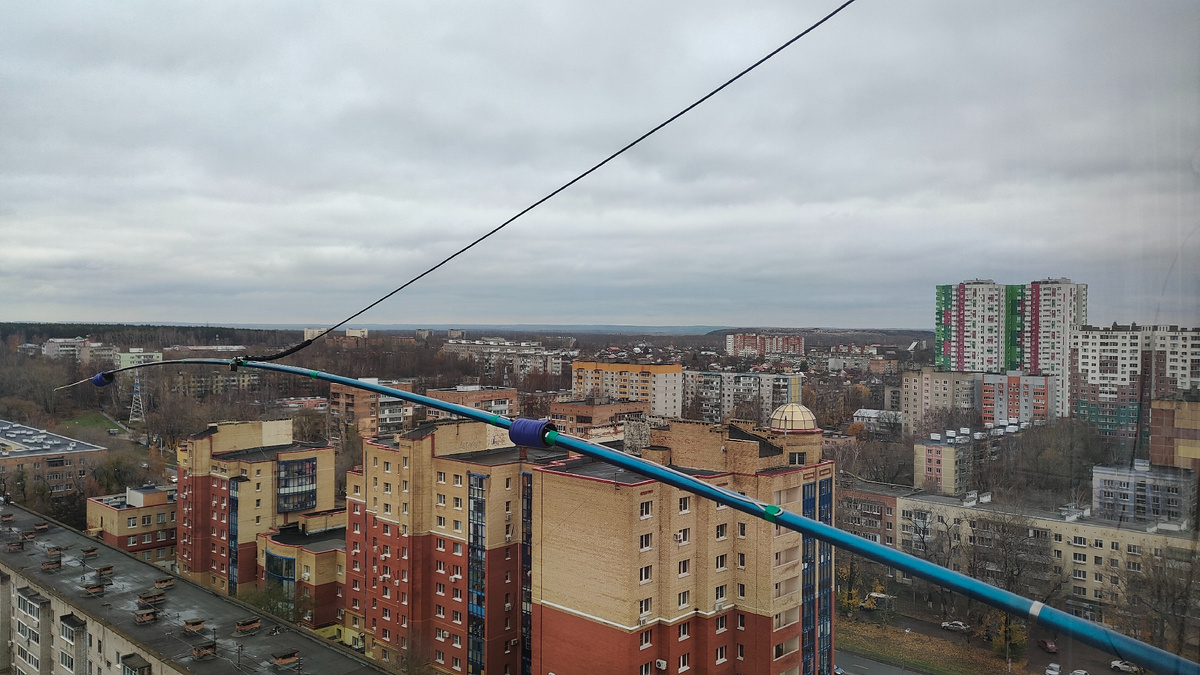 Что ж, можно приступать к натурным испытаниям! Вот так антенна выглядела будучи установленной на балконе.