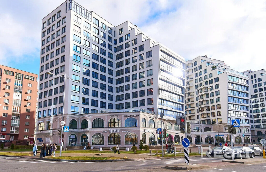 В «Маяке Минска» продается красивая евротрешка с видом на Национальную библиотеку и несколькими лоджиями. Квартира полностью готова к проживанию: тут сделан светлый интерьер, установлена техника, отделаны два санузла. Узнали, сколько же за нее нужно будет заплатить. Продается квартира в 13-этажном доме на Мстиславца, 12. Его построили в 2013 году в ЖК «Маяк Минска». Новостройка располагается на 9 уровне и занимает 93,2 м² — это евротрешка. Внутри сделан хороший светлый ремонт. Кухня-гостиная обставлена мебелью и техникой Bosch, включая холодильник, варочную панель, посудомойку и духовой шкаф. Около окна разместилась столовая с видом на библиотеку. Выбираете квартиру в новостройке? Тогда вам поможет наш обзор по всем новостройкам Минска и пригорода. Мы собрали в одном месте и понятном виде, всю необходимую информацию: от наличия квартир по площадям и ценам, до условий кредитования. Остальную площадь разделили между собой спальня, гостевая, гардеробная и кабинет. В квартире предусмотрены