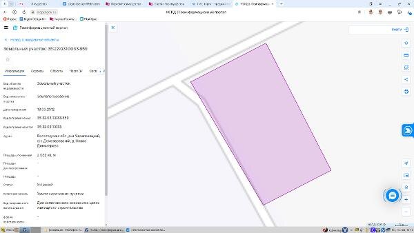 Название: Земельный участок, площадью 2032 кв.м., кадастровый номер 35:22:0310033:859, расположенный по адресу: Вологодская область