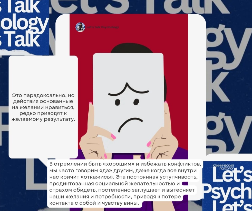 В стремлении быть «хорошим» и избежать конфликтов, мы часто говорим «да» другим, даже когда все внутри нас кричит «откажись». Эта постоянная уступчивость, продиктованная социальной желательностью и страхом обидеть, постепенно заглушает и вытесняет наши желания и потребности, приводя к потере контакта с собой и чувству вины.