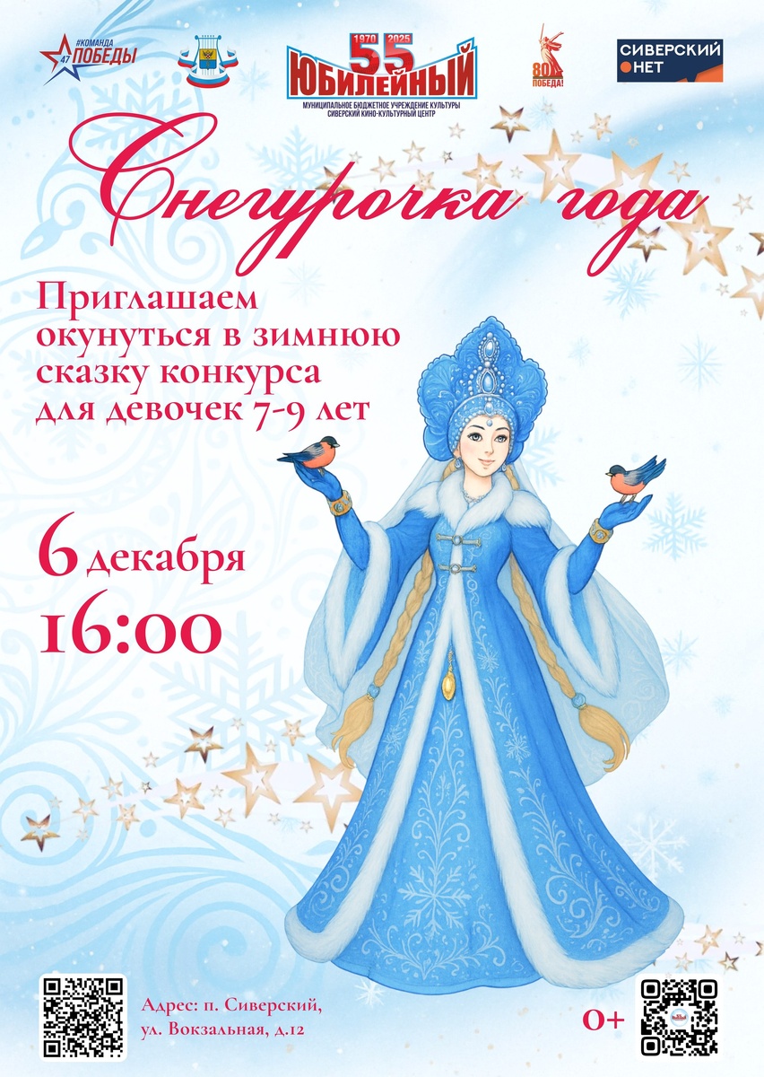 ✨Главные герои новогодних праздников - Дед Мороз🎅 и его помощница, внучка — Снегурочка🤶! Именно этому доброму и милому сказочному персонажу посвящен конкурс «Снегурочка года», в котором примут участие девочки от 7 до 9 лет. ✨Тема конкурса - "Фабрика звёзд Снегурочки". Программа будет состоять из четырех заданий: рассказ о себе "Я - Снегурочка из сказки", творческий номер "Снегурочка - звезда на сцене!", "Звёздный смайлик для деда Мороза" и Зимнее дефиле Снегурочек. ✨Приглашаем всех вместе с нами в чудесную сказку под названием «Снегурочка года». #Снегурочкагода #конкурс #всейсемьей #зимняясказка #СККЦЮбилейный Наш канал в Max, вступайте Источник: Открыть