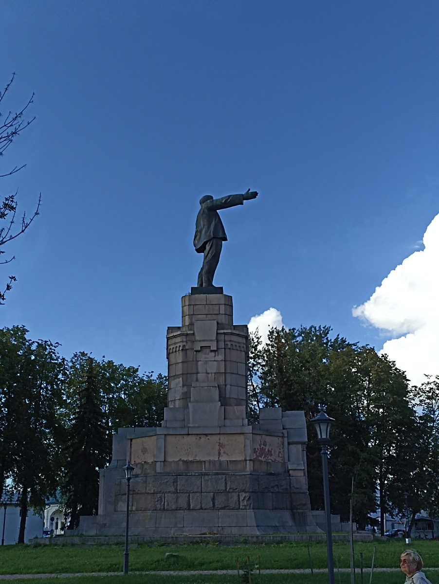 И снова мы проплыли мимо Костромы, Владимир Ильич, стоя на своем пьедестале, показал дорогу нашему теплоходу. И мы прошли Кострому без остановки. Но это всё было ещё в июле, так что не побывать в августе в Костроме было невозможно. Уж очень зайцы нам понравились! Буквально накануне поездки, вдруг выяснилось, что поголовье "Мазайских зайцев" увеличилось, а некоторые вдруг перебрались на новые места обитания. К тому же у зайчиков появилась своя торговая точка - "Заячий Островок", и прибыв в Кострому, выяснилось, что там не только сувениры заячьи можно купить, но и получить сертификат Искателя зайцев! Для получения оного требуется попросить буклет с картой заячьего ареала обитания, обойти всех ушастых (запечатлеть их на память или просто полюбоваться), а примерно половину трофеев заверить печатью в партнерском магазине или кафе, расположенных, рядом с зайцем. И когда все печати будут собраны, то в киоске Вам обменяют буклет на именной Сертификат, да еще в качестве приз
