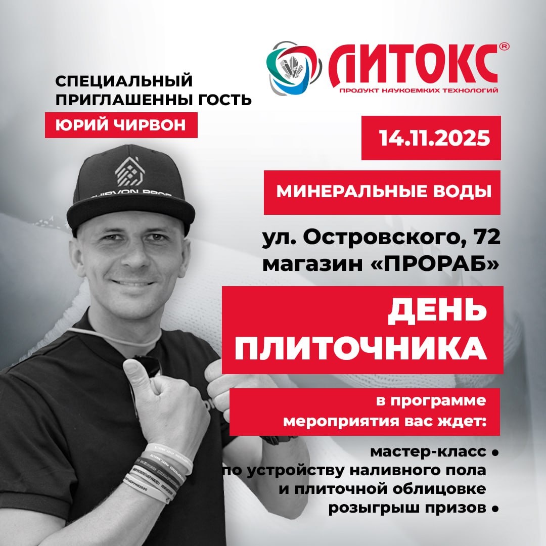 📣Приглашаем на мастер-класс ТМ ЛИТОКС в г. Минеральные воды! ⠀ Приглашаем вас посетить наш мастер-класс, где вы сможете познакомиться с продукцией и узнать о новинках. ⠀ 🔹Программа мастер-класса включает: ⠀ ☑️ Особенности применения и характеристики плиточных клеев. ⠀ ☑️ Преимущества использования грунтовок и наливных полов. ☑️ Советы по работе, лайф-хаки от специального гостя Юрия Чирвона @chirvon_prof ⠀ Познакомитесь с материалами ТМ ЛИТОКС и получите практические рекомендации и советы по использованию от технических специалистов. ⠀ 🕑Дата и время: 14 ноября Начало в 10:00 ⠀ 📍Место проведения: ул. Островского, 72 магазин "Прораб" ⠀ ‼️Вход свободный, регистрация по ссылке: https://forms.yandex.ru/u/690366ed5056907a3ecde720 ⠀ Этот мастер-класс — прекрасная возможность для мастеров расширить свои знания и навыки, а также лично убедиться в качестве и надежности продукции ТМ ЛИТОКС. ⠀ ✨ Присоединяйтесь к нам и откройте для себя мир современных строительных решений вместе с ТМ ЛИТОКС!