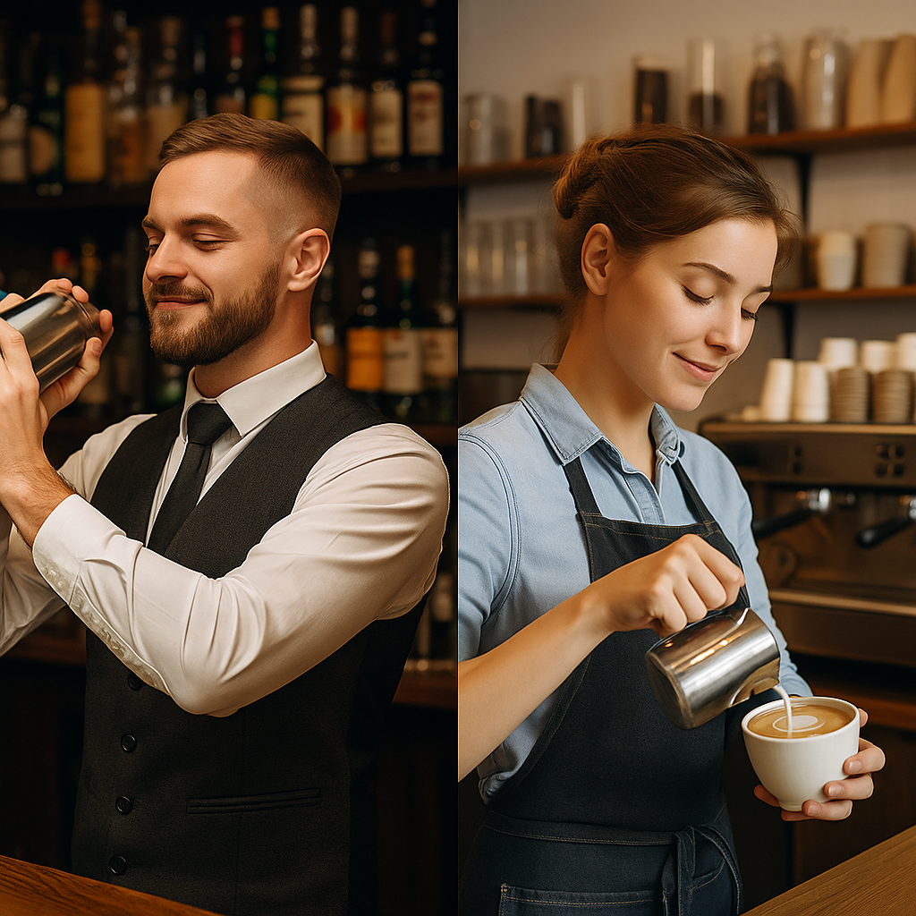 Но если ты только думаешь, куда пойти — за кофемашину или за барную стойку — вот честный разбор, без гламура и мифов. И бариста, и бармен — ремесленники вкуса.