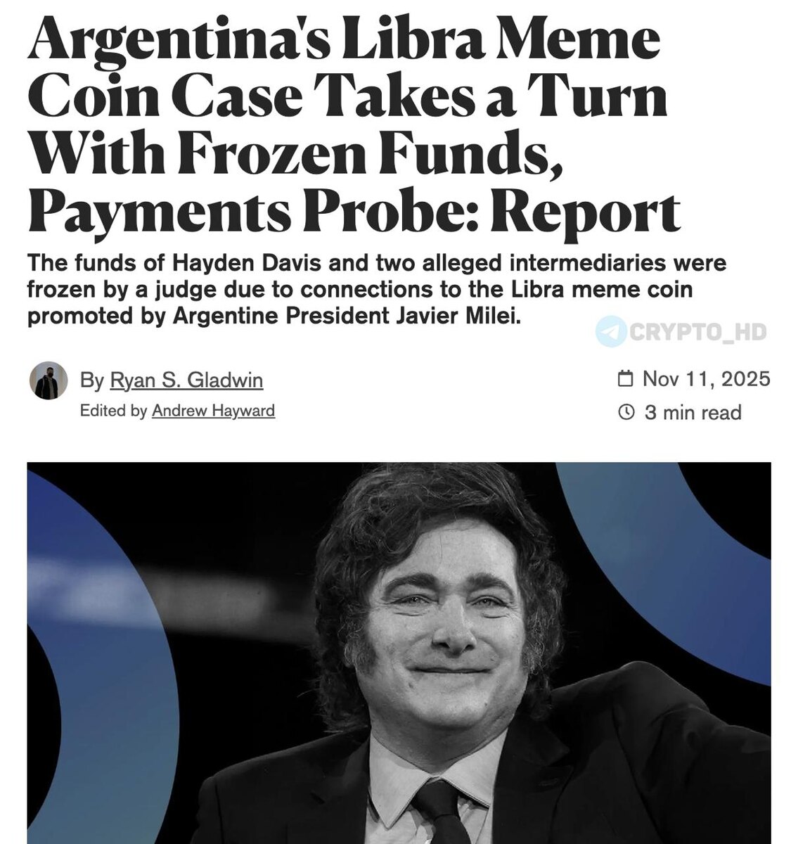 🇦🇷 Президента Аргентины Хавьера Милей снова подозревают в получении взятки через мемкоин #LIBRA. Кроме того, аргентинский федеральный судья заморозил активы, связанные со скандалом вокруг токена LIBRA, который продвигал Хавьер Милей. Что выяснило следствие: ➤ Американец Хейден Дэвис сделал перевод на $507,5k всего через 42 минуты после твита Хавьера Милей, где тот называл Дэвиса своим «советником по блокчейну и AI-технологиям». ➤ Прокуратура считает, что это могли быть непрямые взятки, проходившие через посредников, чтобы скрыть получателей. ➤ В переписке Дэвиса фигурирует сестра президента Карина Милей, которой он якобы «отправлял деньги». ➤ Ущерб инвесторов от LIBRA оценивается в $100–120m. ➤ Суд распорядился заблокировать имущество Дэвиса и двух криптооператоров, а также уведомить все криптобиржи Аргентины. Из утечки переписки Дэвиса: «Я отправляю деньги его сестре, а он подписывает, что я скажу, и делает, что я хочу. Сумасшествие». Ранее: засадили всех Crypto Headlines