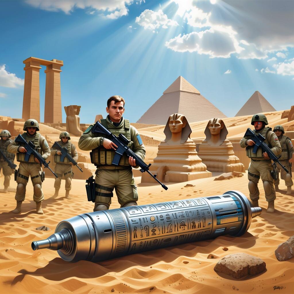 Вскоре разведчики заметили необычный артефакт, скрытый глубоко в песке неподалеку от одной из древних гробниц. По форме и размерам объект походил на портал или механизм перемещения.