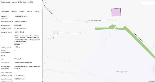 Название: Земельный участок, пл.4000 кв.м, кадастровый №42:24:0401002:524, разрешенное использование: оборудованные площадки для занятий