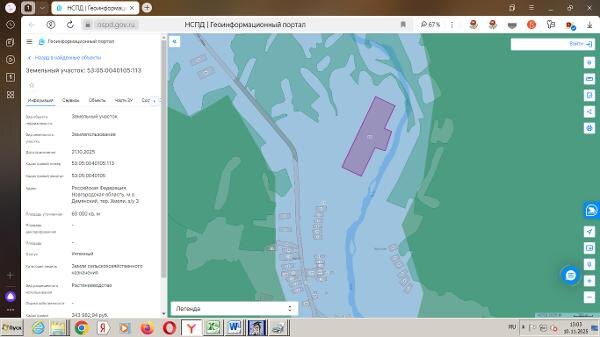 Название: земельный участок площадью 60000 кв.м., из земель сельскохозяйственного назначения, с кадастровым номером 53:05:0040105:113