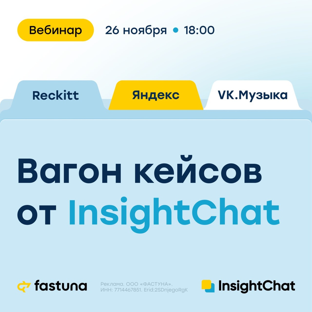 Вагон кейсов от InsightChat 26 ноября в 18:00 команда Fastuna проведет совместный вебинар со спикерами из Reckitt, Яндекс и VK.Музыки. На мероприятии поделятся кейсами ИИ-платформы и расскажут про новые фичи. 🟡 О чем поговорим: — Reckitt. Как искали новые ситуации возникновения изжоги и подходы к ее лечению. — Яндекс. Как за неделю исследовать (тернистый) путь к сдаче квартиры для CJM. — VK Музыка. ИИ-модератор против модератора-человека: кто лучше ведет переписки. 🟡 Спикеры: — Светлана Амелькина, старший менеджер по исследованиям и аналитике, Reckitt. — Игорь Гладышкевич, менеджер по маркетинговым исследованиям, Яндекс Вертикали. — Юлия Кингсеп, руководитель команды UX-исследований, VK Музыка. — Александр Кацуро, управляющий директор Fastuna. — Дарья Малышева, старший менеджер по продукту, Fastuna. Участие бесплатное. Вебинар пройдет на платформе Контур.Толк. Подключайтесь 26 ноября в 18:00! 💪 Зарегистрироваться → #fastuna_анонсы