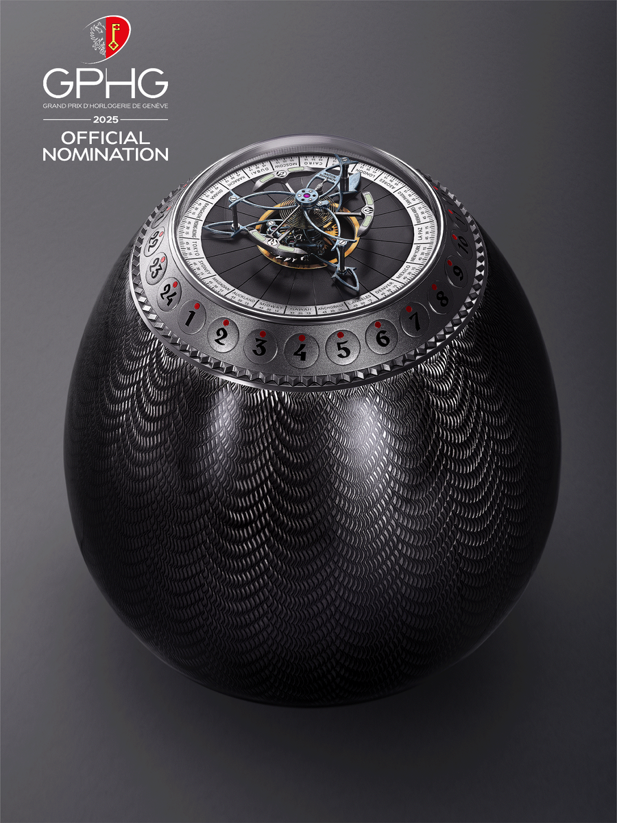 Премия GPHG часто становится отправной точкой для новых имён и инновационных проектов, подтверждая их место в истории Haute Horlogerie. В 2025 году Петербургский пасхальный турбийон Антона Суханова вошел в конкурсный список GPHG в категории Mechanical Clock. Эта уникальная работа сочетает в себе ювелирное искусство, традиции Петербурга и современную механику. Корпус выполнен из серебра и покрыт горячей эмалью по гильоше, купол — из сапфирового стекла. Внутри — вертикальный механизм с ручным заводом, который оснащен летающим турбийоном, совершающим оборот каждые 24 секунды. Запас хода — 7,5 дней. Для мануфактуры Anton Suhanov участие в GPHG — это не просто признание. Это подтверждение философии бренда: сочетание