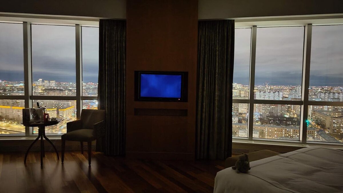 Когда в номере гаснет свет, город сам берёт слово. Три панорамных окна превращаются в киноэкран, где без конца крутят «Москва. Ночная версия». Овца Борис устроился на подоконнике — удобно залипать на огни на мосту. С высоты 26-го этажа видно всё: сияющий купол Дома музыки, огни Таганки и тихие линии московских рек — будто город специально выстроился в очередь, чтобы попасть в кадр. И когда думаешь, что лучше не бывает, наступает рассвет: солнце аккуратно выкатывается из-за крыш, а Овца Борис, как опытный инспектор видов, уже записывает в блокнот — «лучшее утро на Красных Холмах». Днём Москва другая: меньше магии, больше ясности. Речки стекают вниз как по линейке, дома кажутся игрушечными, а Овца Борис на подоконнике уверенно позирует на фоне города — как будто это не отель, а его личная смотровая площадка. #swissotel