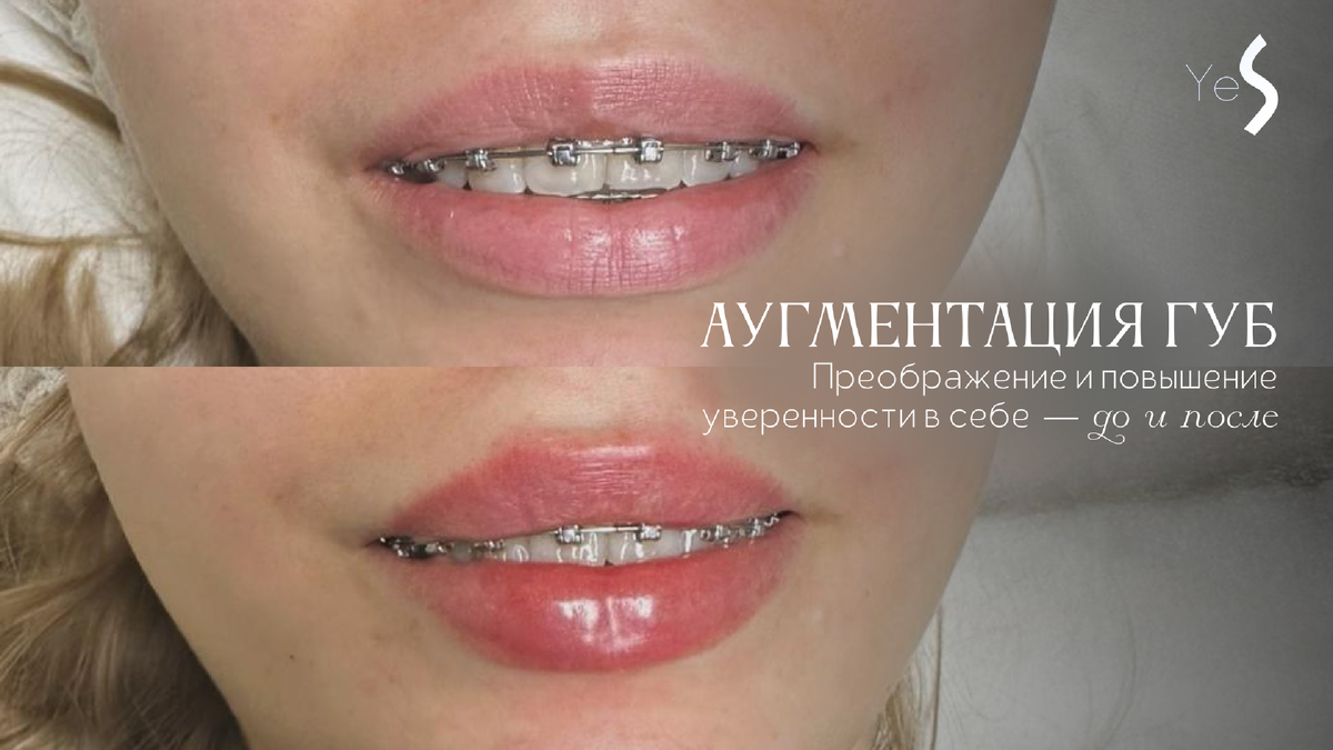 Аугментация губ: Преображение и повышение уверенности в себе — до и после.