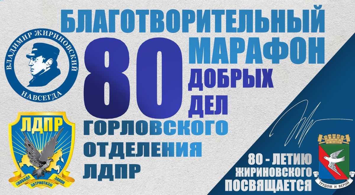 👤 Горловское отделение ЛДПР запускает благотворительный марафон в честь 80-летия со дня рождения Владимира Жириновского В преддверии юбилея Основателя ЛДПР Владимира Жириновского Горловское местное отделение партии инициирует масштабный благотворительный марафон «80 добрых дел Горловского отделения ЛДПР» – серию общественно значимых акций, призванных увековечить память выдающегося политика . Марафон объединит социально-благотворительные, спортивные, учебно-воспитательные и другие инициативы, направленные на улучшение жизни горожан. Любое доброе и полезное начинание может стать частью марафона. ✅ Приглашаем делиться своими акциями в социальных сетях под хэштегом #80добрыхдел_лдпр, тем самым внося вклад в общее дело памяти и преемственности Владимира Жириновского. «Мы нацелены на результат», – обозначил партиец ЛДПР Евгений Шубин. 💬 «Благотворительный марафон станет ярким подтверждением тому, что дело Владимира Жириновского живет! Мы нацелены, чтобы результатом марафона стало улуч