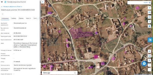 Название: Земельный участок из земель населенных пунктов Кутейниковского сельского поселения, площадью 4600+/-24 кв.м., кадастровый номер 61:33:0030501:2343, местоположение: Российская Федерация, Ростовская область, Родионово-Несветайский район, х. Каменный Брод, вид разрешенного использования: для ведения личного подсобного хозяйства Канал: Госземля Ростовская область Область: обл Ростовская Родионово-Несветайский район Район: х. Каменный Брод Населенный пункт: - Локация: Смотреть на карте ВРИ: Для ведения личного подсобного хозяйства (приусадебный земельный участок) Кадастровый номер: 61:33:0030501:2343 Кадастровая стоимость: - Вид сделки: Аренда Площадь: 4600 м² Начальная цена: 516437.00 руб. Дата завершения: 22.11.2025 Подробнее: ГИС ТОРГИ #госземля #земляотгосударства #земля #земельныйучасток #земельныеторги #торги #аукцион #арендаземли #аренда #ростовскаяобласть