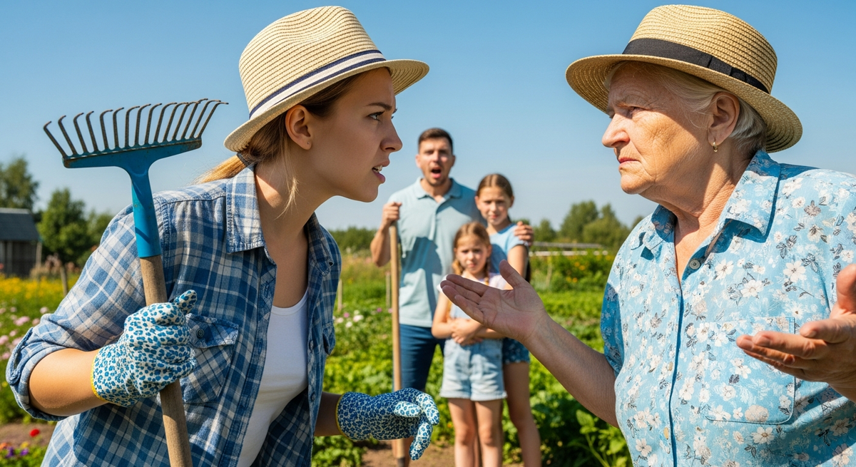 Утро началось с привычной дачной суеты. Валентина Петровна встала раньше всех и уже хозяйственно хлопотала во дворе, когда Ольга вышла на крыльцо с чашкой чая. Свекровь раздавала указания Максиму, перетаскивавшему мешки с землёй:
