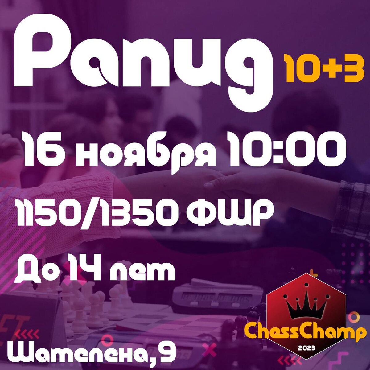 ОБНОВЛЕНИЕ ПО МЕСТАМ🔥 Продолжается запись на турниры 16 ноября🔥 МЕСТА ОГРАНИЧЕНЫ! Оставшиеся места: 1150 - 6 1350 - 6 1500 - 2 2000 - 2 Запись на турниры👇 По ссылке https://docs.google.com/forms/d/1qmNHJFhPagi_VaTjnU5nGCeuYnNYMw5JXkt0ErVvk6c/edit Или на сайте - https://chesschamp.ru