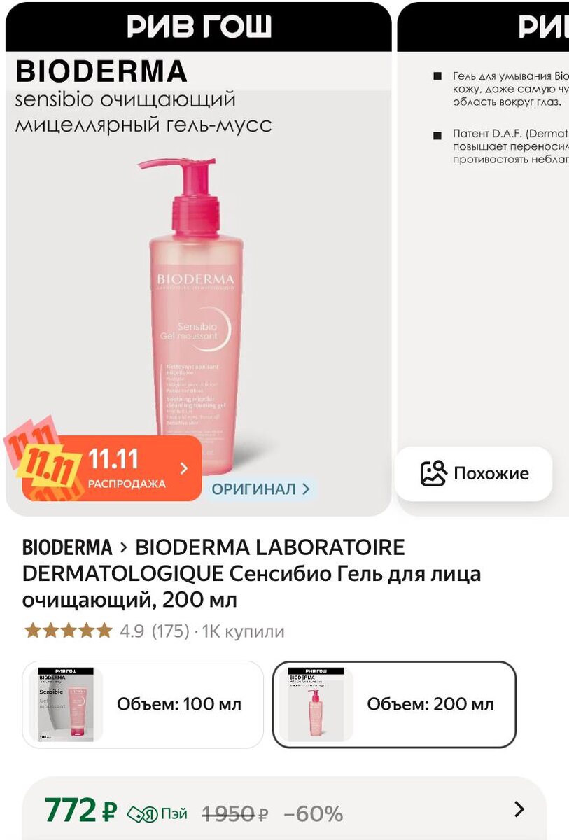 2️⃣0️⃣0️⃣ мл 🔥🔥🔥 BIODERMA LABORATOIRE DERMATOLOGIQUE Сенсибио Гель для лица очищающий, 200 мл https://market.yandex.ru/cc/7ytokX Необходимо выбрать любимую категорию Рив гош в ЛК выбираем доставку Яндекс Цена на 🛍: 772 ₽ | 1950 ₽ рейтинг: 4.9⭐️ выгодная цена 💲 ⭐️BER103-AF — минус 100₽ на один любой заказ от 5000₽ ✅ Подписаться 🔣 Бот с промокодами