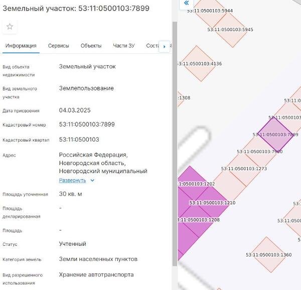 Название: Лот № 6 - земельный участок из земель населённых пунктов с кадастровым номером 53:11:0500103:7899, площадью 30 кв.м, расположенный