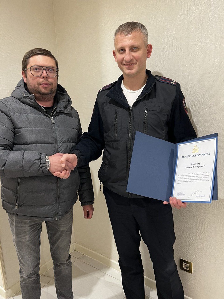 Депутат ЛДПР наградил сотрудника полиции в Белгороде в честь Дня МВД В День сотрудников органов внутренних дел депутат ЛДПР Константин Климашевский вручил Почётную грамоту Председателя ЛДПР подполковнику полиции Роману Деревлеву — заместителю начальника отдела полиции № 1 УМВД России по городу Белгороду. Награда вручена за многогранную деятельность: 🔸Помощь бойцам СВО и их семьям 🔸Участие во всероссийских акциях в поддержку ветеранов Великой Отечественной войны и тружеников тыла 🔸Вклад в сохранение исторической правды и традиционных семейных ценностей 🔸Добросовестную работу с обращениями жителей региона «Такие сотрудники, как Роман Викторович, — настоящая опора правопорядка в нашем регионе. Его преданность службе и активная гражданская позиция заслуживают самого высокого признания», — отметил Константин Климашевский. Белгородское региональное отделение ЛДПР поздравляет всех сотрудников и ветеранов органов внутренних дел с профессиональным праздником! Желаем безопасных дежурст