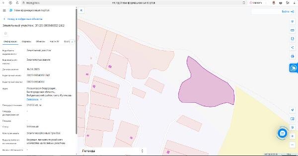 Название: Земельный участок из земель населенных пунктов с кадастровым номером 31:25:0604002:242, площадью 21856 кв