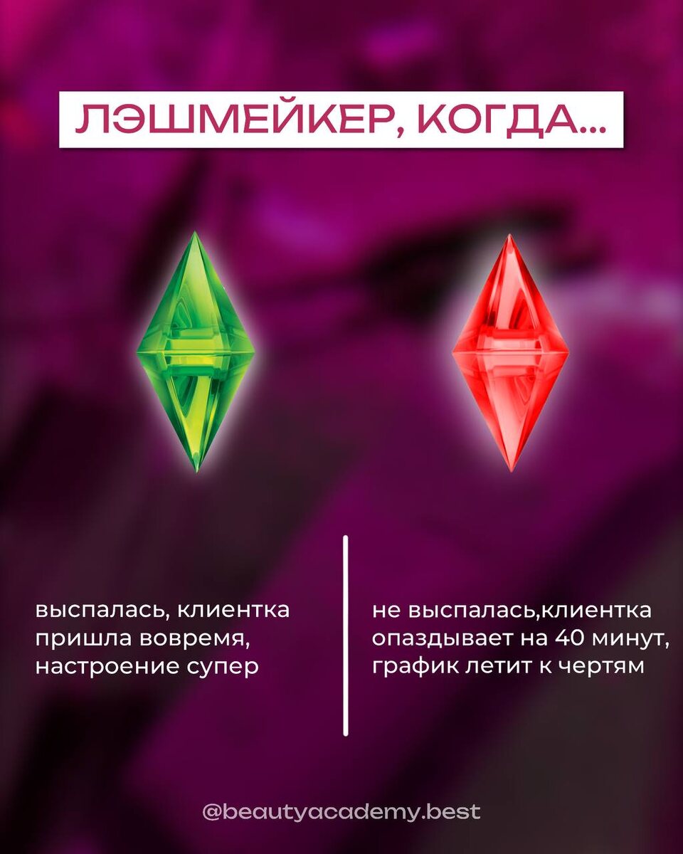 Какой вы лэшмейкер сегодня? ✨ Девчонки, эта карусель для тех, кто знает все радости и «подводные камни» работы лэшмейкера 😏 От утреннего подъёма до вечера, когда график в хаосе из-за опоздания одной клиентки 🤭 Ведь быть лэшмейкером – это не только красиво, но иногда и реальная жизнь с её взлётами и падениями 🙏 Какой слайд у вас вызвал улыбку или «о, это про меня»? Пишите в комментариях 🥰