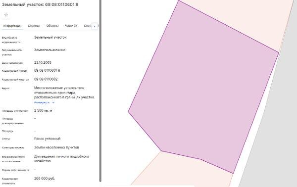 Название: Земельный участок с кадастровым номером 69:08:0110601:8 площадью 2500 кв.м, расположенный по адресу: Тверская область