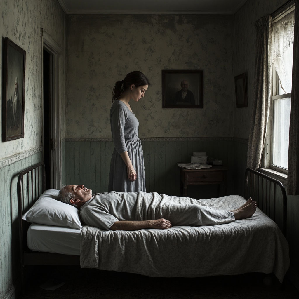 Последний вопрос Ивана В маленькой деревне под Рязанью, где зимы тянутся, как старые нитки, а лето пахнет свежим сеном, жил Иван Семёнович. Восемьдесят семь лет — возраст, когда каждый день — как подарок, а каждый вздох — напоминание. Он лежал на узкой кровати, под окном, где когда-то сажал яблони, а теперь лишь ветер шевелил занавески. Доктор ушёл, сказав: «Дело на часы». Иван не плакал. Он ждал. И вот — дверь скрипнула, хотя никто не входил. В комнате стало холоднее, но не страшно. Перед кроватью стояла Она. Не в чёрном плаще, не с косой — просто женщина в сером, с глазами, в которых отражались все его жизни.